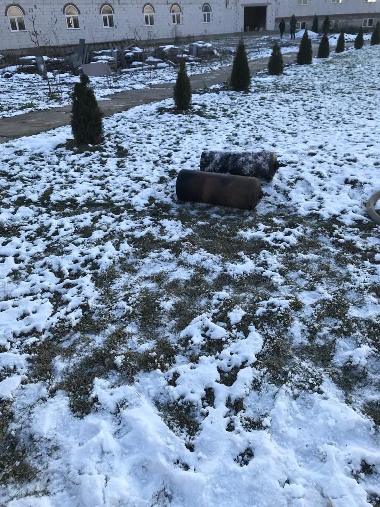 На місці виклику ДСНСники з’ясували, що займання трапилось на даху в господарській будівлі розміром 20х6 м. Під час гасіння пожежі рятувальники використовували газодимозахисне обладнання, щоб винести два газових балони.