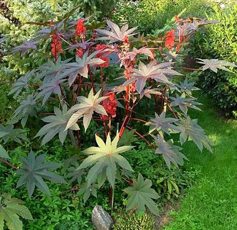 Рицина звичайна: декоративна рослина до 3 м із великим пальчастим листям та червоними плодами. Зустрічається в садах та парках. Насіння містить рицин – смертельно небезпечну отруту, що викликає блювання, кровотечі, порушення електролітного балансу.