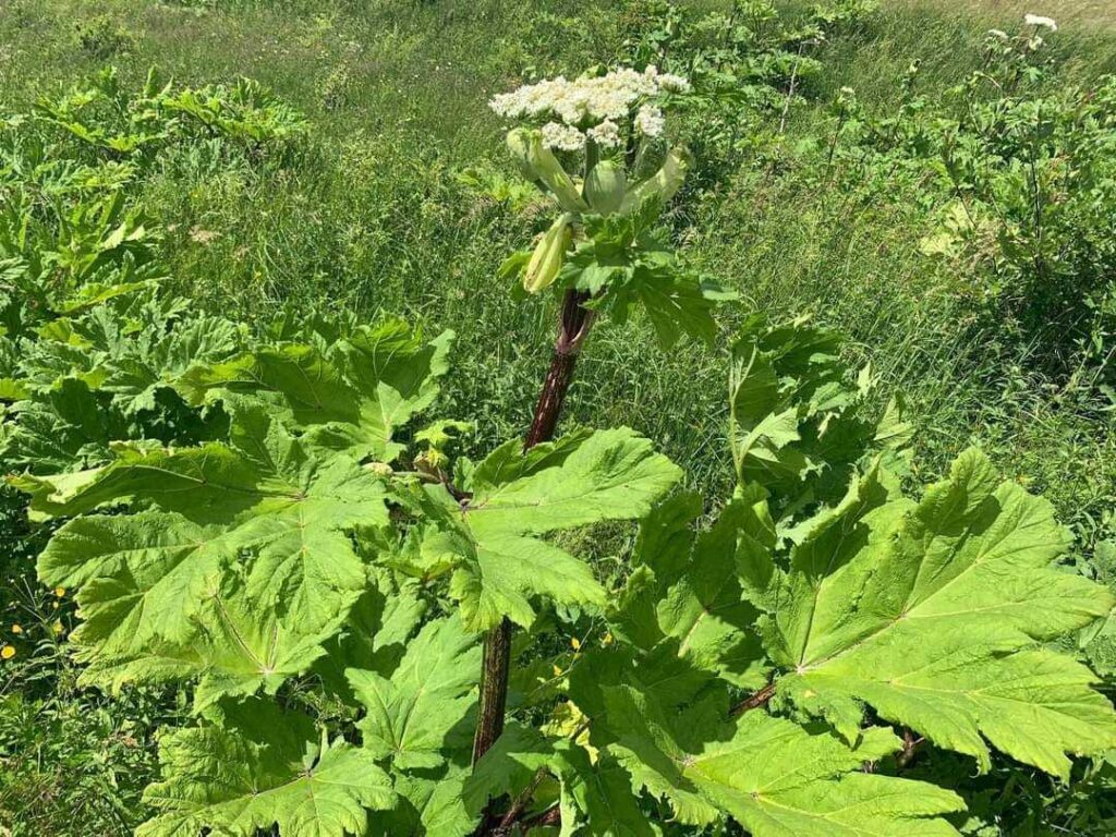Борщівник Сосновського: висока рослина (до 3 м) із великими зонтичними суцвіттями білого або зеленуватого кольору. Росте на узбіччях доріг, біля річок, у занедбаних садах, парках та лісосмугах. Сік викликає фотодерматит – опіки шкіри, які посилюються під дією сонця.