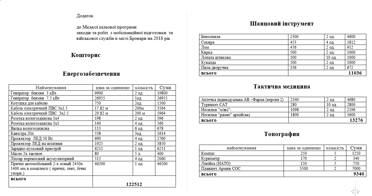 У тому числі 20 тис. грн. планують витратити на транспорт для розшуку призовників, що ухиляються від проходження строкової служби. І майже 35 тис. грн. на рекламно-агітаційну продукцію щодо військової служби за контрактом. Окрім цього, 239 тис. грн. коштуватиме забезпечення зв’язком виконавців Програми (у цю суму входять купівля комплекта зв’язку, репітера, ноутбуків, принтерів, відеопроектора).
