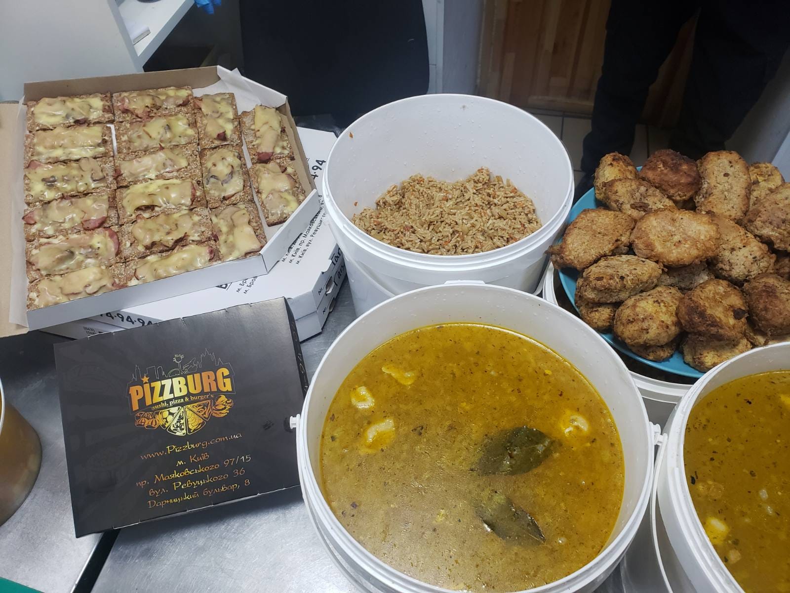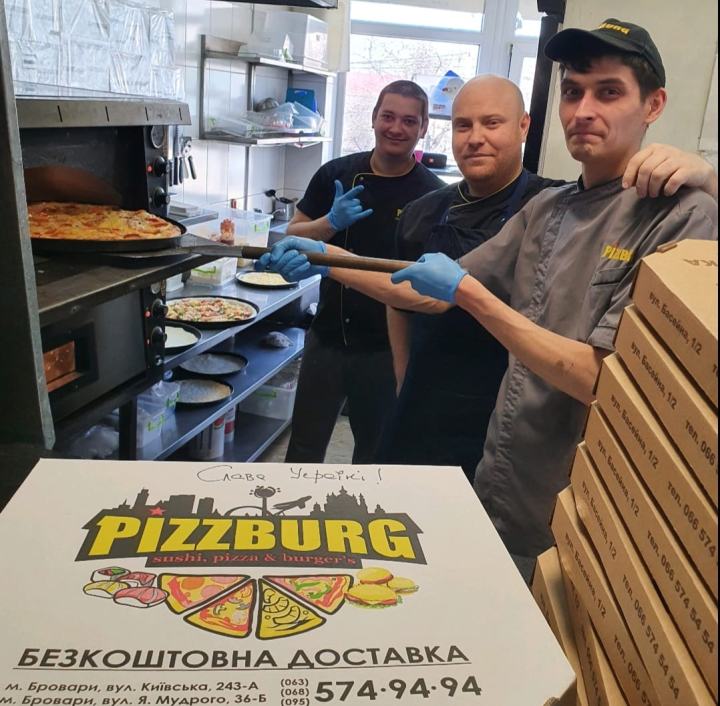 У Броварах десятки закладів харчування у свій спосіб допомагають нашим захисникам. Серед них – і піцерії Pizzburg. Піци, супи, картоплю з тушонкою, овочеві салати, пироги, шарлотки, компоти та інші страви готують кухарі Pizzburg спільно з волонтерами і доставляють їжу нашим захисникам як у Броварах, так і столиці.