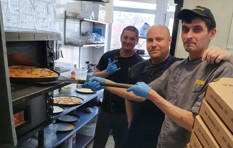 « Із початком війни значна частина працівників виїхала, – розповідає Олександр. – Я спробував зібрати тих, хто залишився в місті, і відкрив один заклад харчування з доставки піци. Проте на прохання волонтерів з Єдиного гуманітарного штабу відкрили ще одну кухню, де і працюємо спільно».