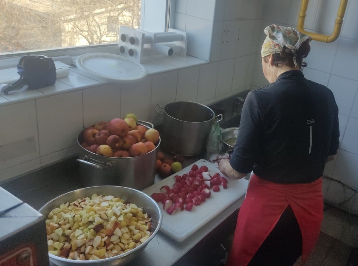 Для приготування страв із штабу завозять необхідні продукти, а поряд із професійними кухарями перекваліфіковуються волонтери. Наразі на 2 кухнях працюють 12 працівників. Забезпечити їжею на добу не одну сотню людей – справа непроста. Але віра волонтерів у перемогу, ЗСУ та свої сили роблять дива.