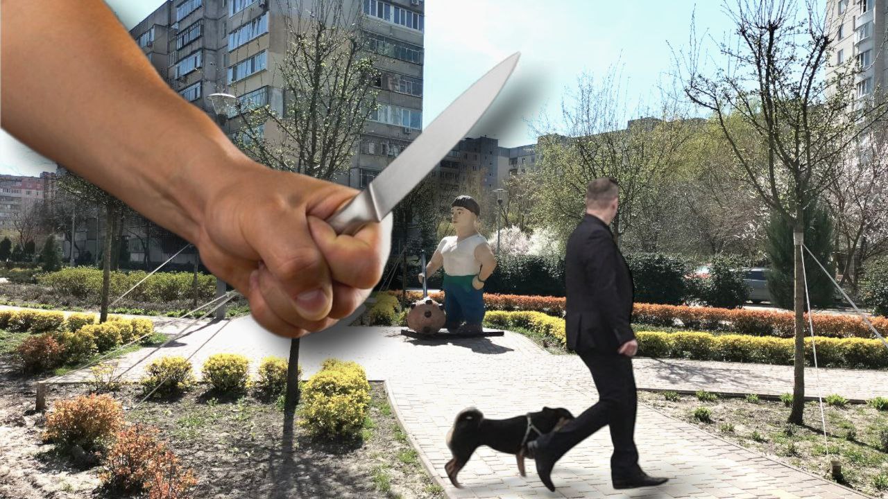 19 квітня в першій половині дня пані Катерина разом із чоловіком та своїм песиком Пирогом йшли Алеєю кохання, що на вул. Чорних Запорожців. До їх улюбленця підбіг один із двох песиків невідомого чоловіка. Після того як Пиріг гавкнув, до нього з ножем почав наближатися власник тварини.