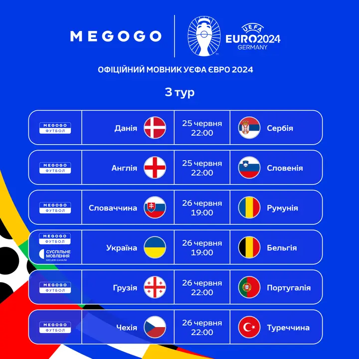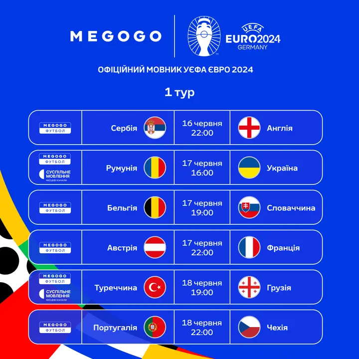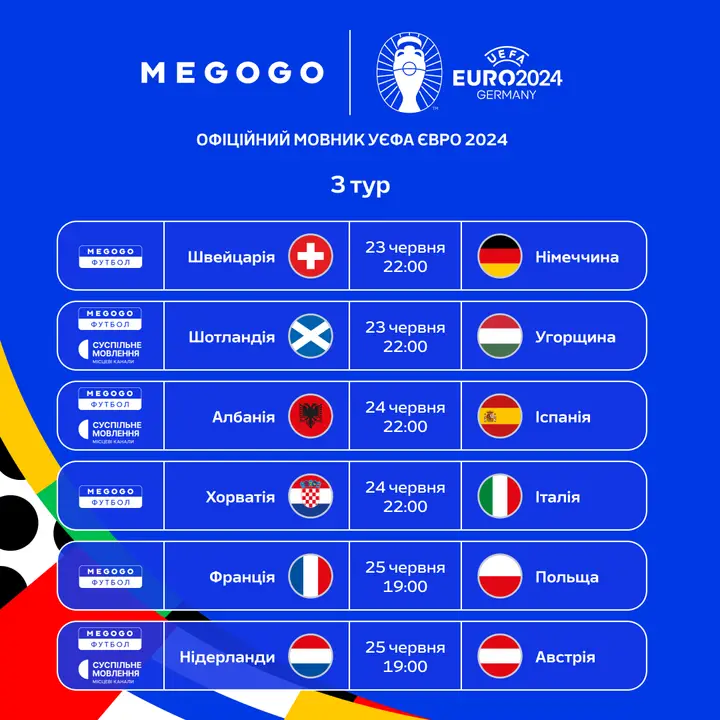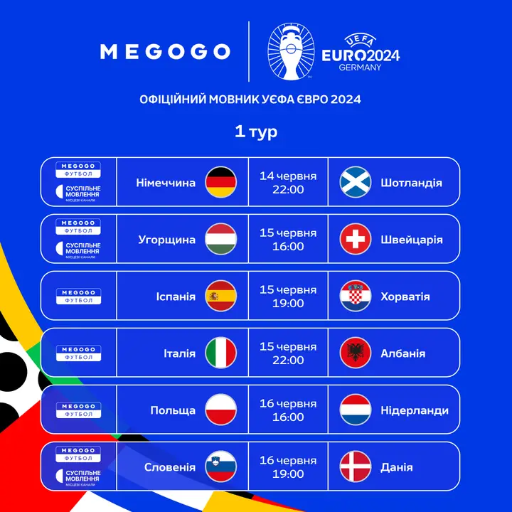 Усі матчі УЄФА Євро-2024 будуть доступні на MEGOGO за передплатою; деталі будуть оголошені незабаром.